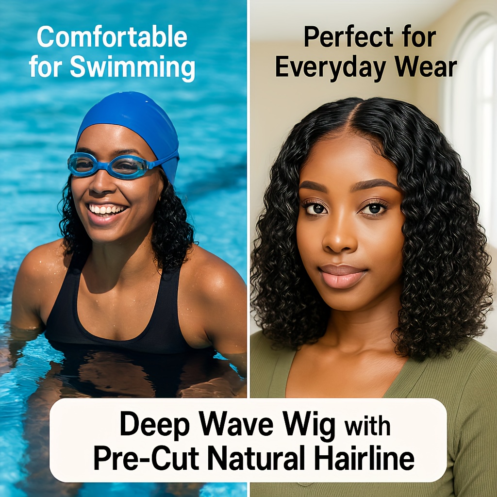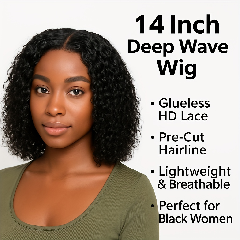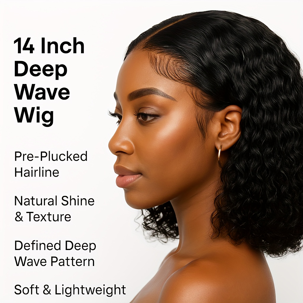 14 Inch Deep Water Wave Wig for Women - Natural Look High-Quality Hairpiece with Pre-Trimmed Hairline, No Glue Adhesive, Wet-Ready for Everyday Use, Perfect for African Women, Versatile Hairpiece, Elegant Hairpiece. VU4937759 T