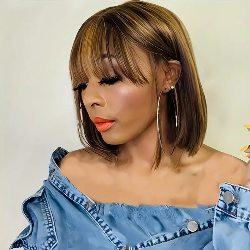 180 Density Highlight Brown Colored Bone Straight Human Hair Bob Wigs Full Machine Wigs P1B 30 Human Hair With Bangs For Women. PD404946 T